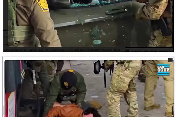 I’m not going to fill this Substack with photos of Amercian protestors facing off against armed Amercian federal agents (who Trump says and they may…