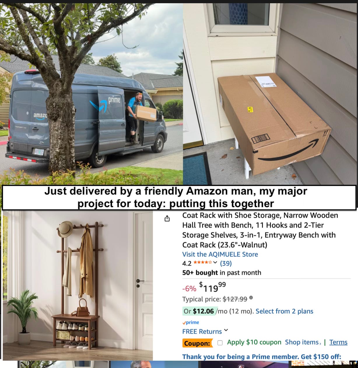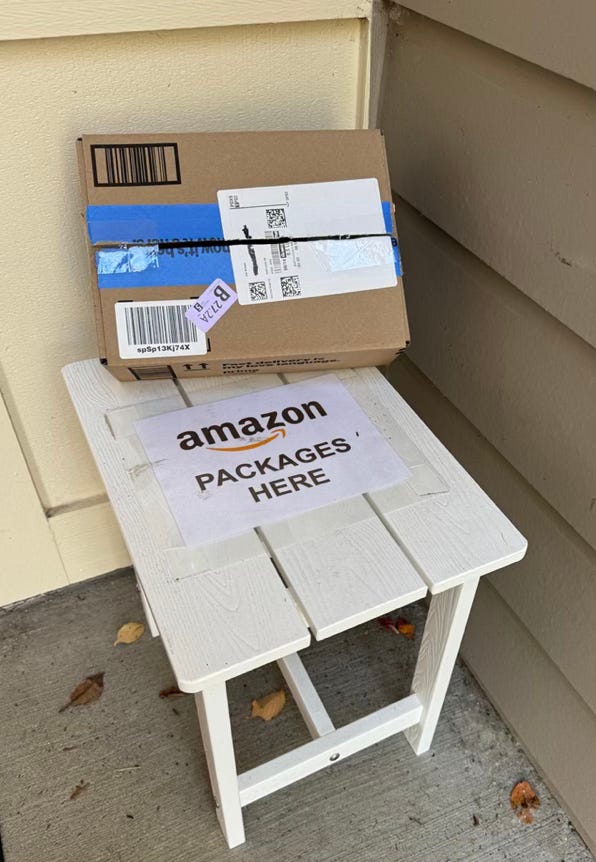 What can I say? I even ordered a small table -from Amazon - to go next to my front door for them to put our orders on.
