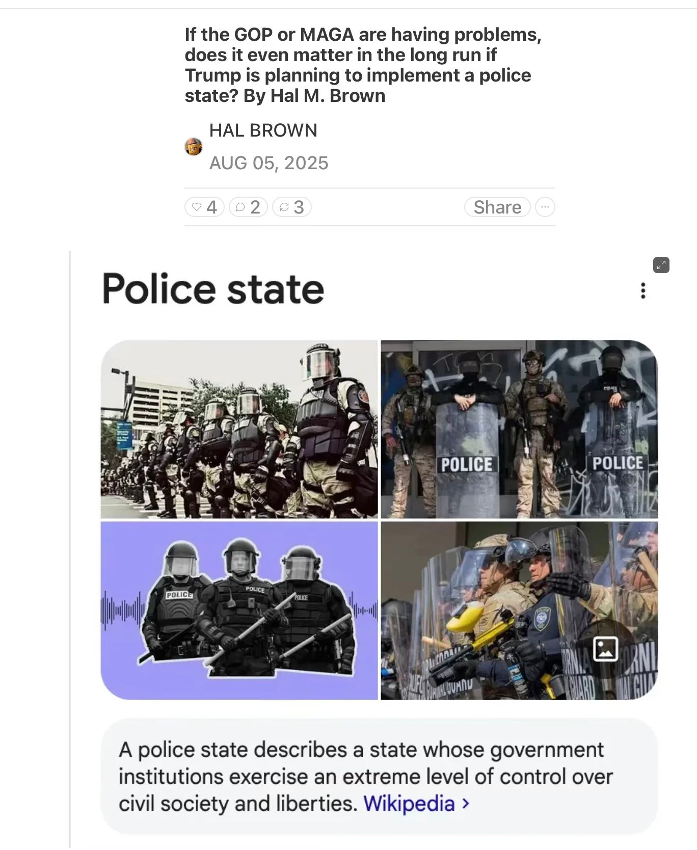 Trump using ICE as his personal Gestapo shows how we are becoming a police state, which I wrote about the other day here…