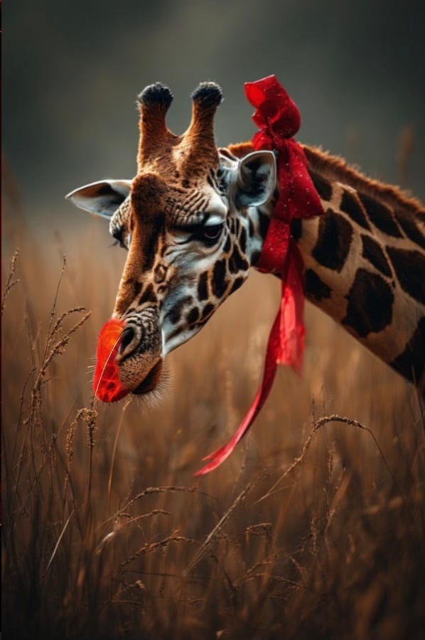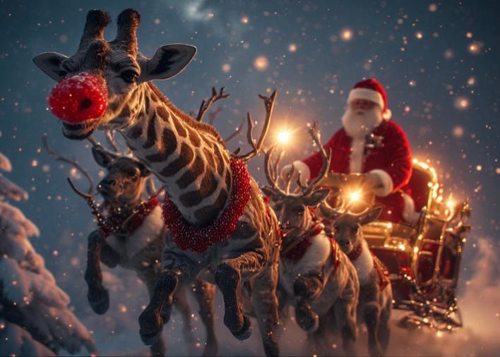 This Substack features Geoff, Santa’s red nosed giraffe. He stands in front of my house as part of my holiday decorations.