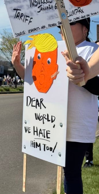 Protestors often makes signs playing on this. Below is one of my favorites from the No Kings protest we went to. Note the bandaid on his ear.