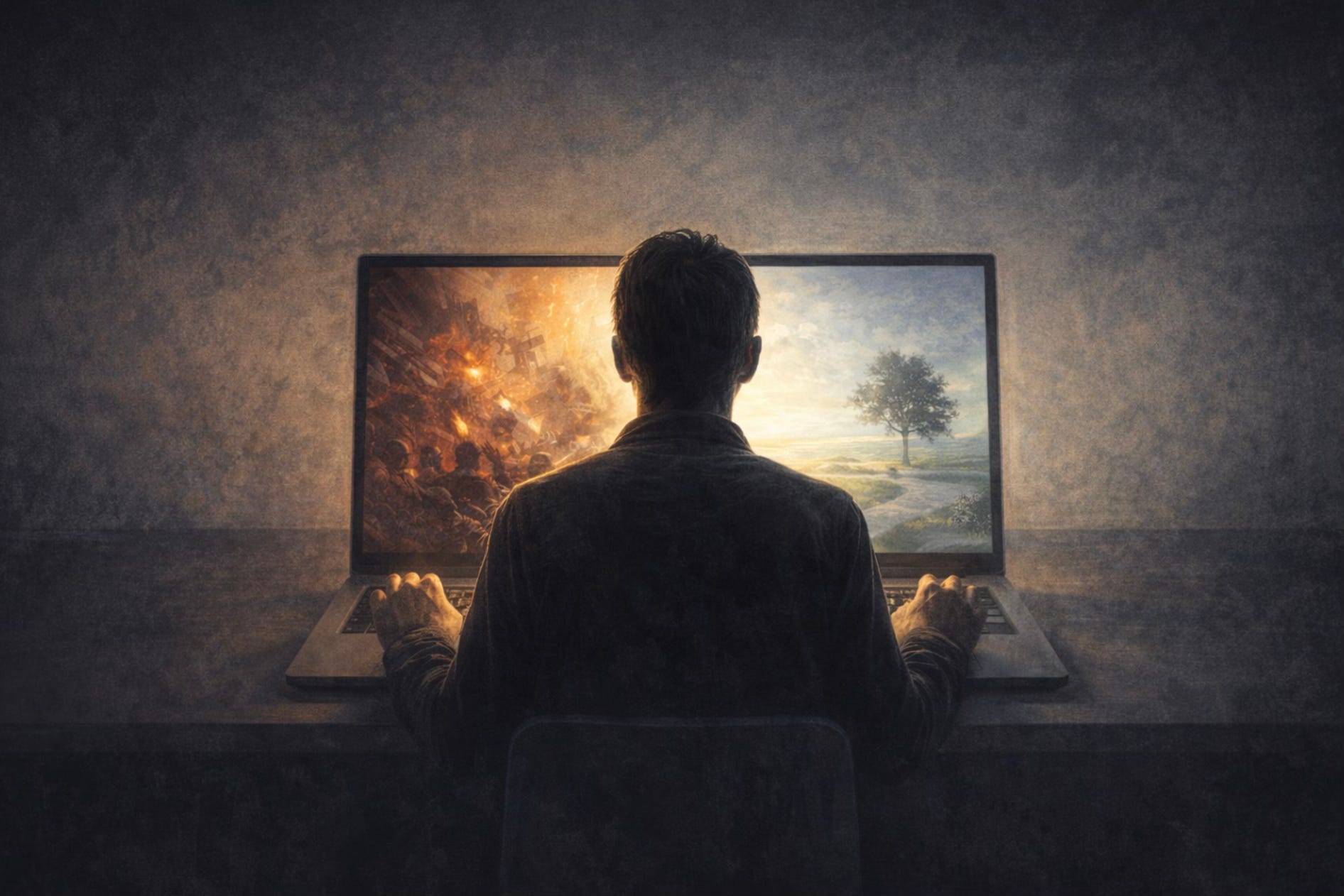 That’s what the image above is meant to suggest. The moment before creation is also a moment of decision. Do you aim for reaction, or for reflection? Do you try to overwhelm, or to clarify?