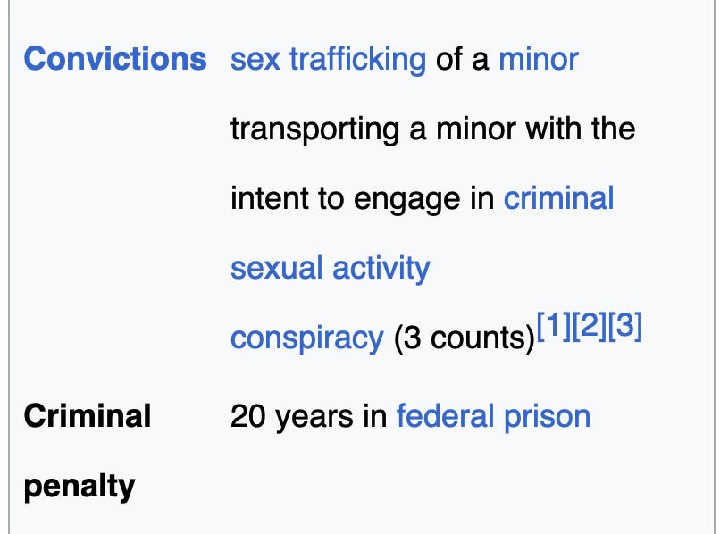 Maxwell is 65 years old. Federal inmates serve an average of 85% of their sentence. They are required to serve a minimum of 85% of their sentence before becoming eligible for release. So at best she will be elderly when she is released if she serves her full sentence. I point this out because it is the judge who sets a sentence. They consider various factors, including the nature of the crime and the defendant's criminal history, before deciding on an appropriate punishment. The judge in her case knew that a 20 year sentence for a 63 year old was basically a sentence, if not for life, for until she didn’t have much of her life remaining. Obviously, a 25 year old who got that sentence would get out and still have much of their lives to live.